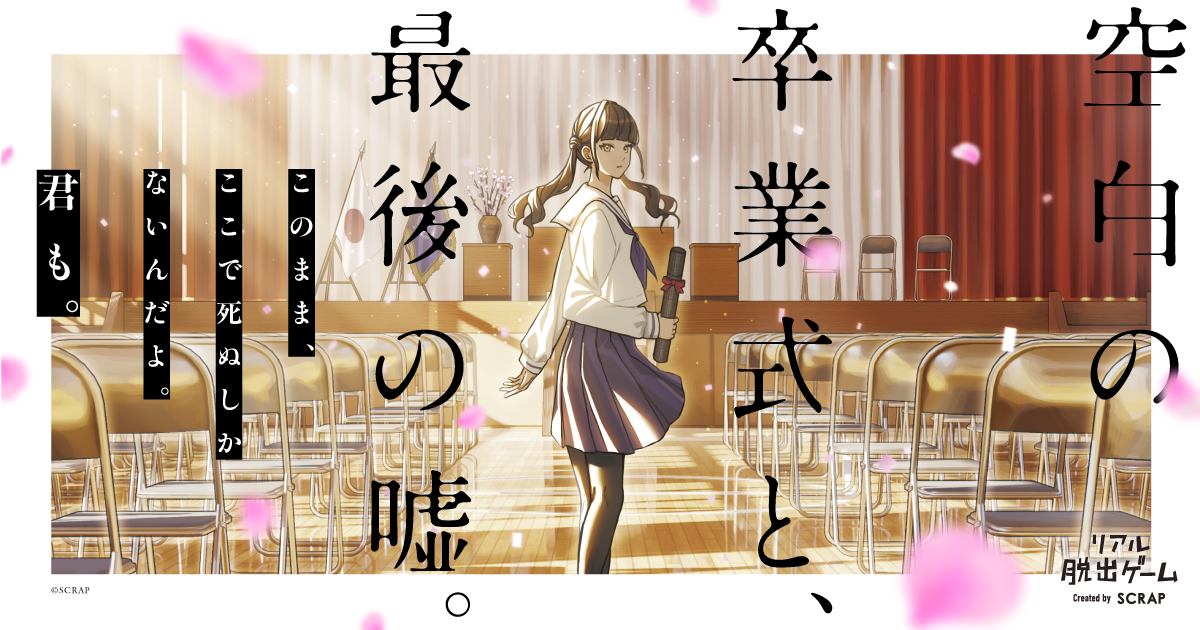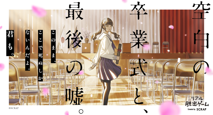 まず、このリアル脱出ゲーム自体について整理しておきます。『空白の卒業式と、最後の嘘。』は、SCRAPが企画・制作した公演型のリアル脱出ゲームです。通常公演は2026年2月19日から5月10日まで、東京ミステリーサーカスで開催中。ゲーム時間は約120分で、LINEアプリを使用して謎解きを進めていく形式です。