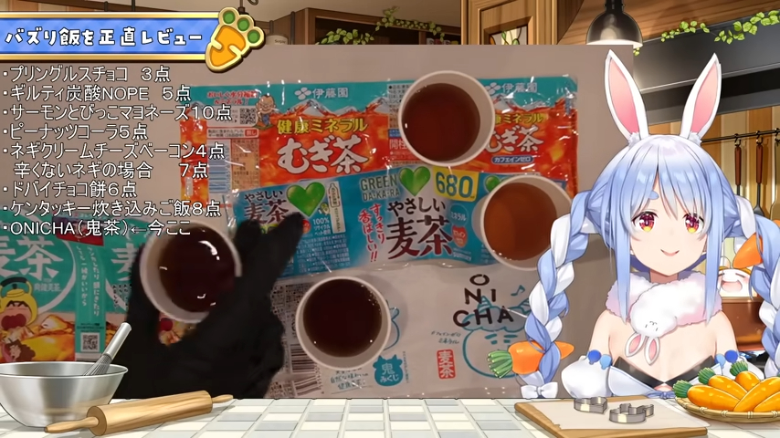 絶賛100点。「ONICHAナンバーワン」「日本を変えた、麦茶の世界を変えました」──兎田ぺこらがカメラ枠でこれだけ褒めちぎったのに、同じ商品をブラインドで7人に飲み比べさせたら、ONICHAを選んだのはたったの1人。ぺこらの100点 vs ロケットニュース7人中1人──このギャップが、ヒカキンプロデュースの新麦茶「ONICHA(オニチャ)」を巡る最初の話題になっています。