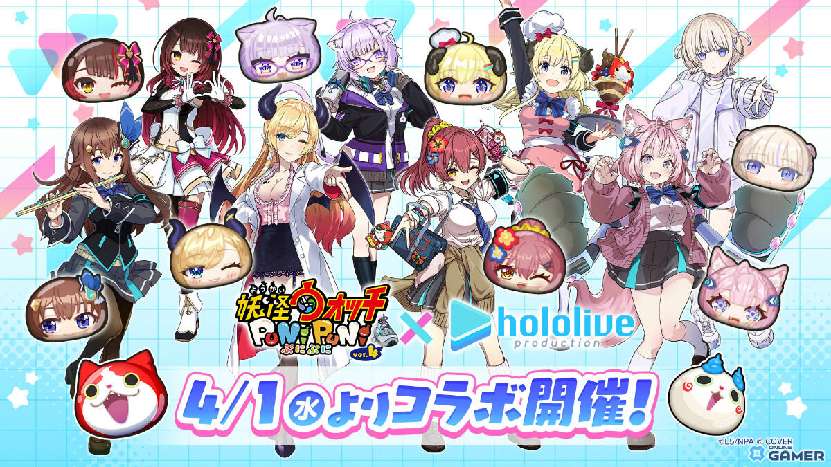 レベルファイブとNHN PlayArtは、スマホ向けパズルゲーム『妖怪ウォッチ ぷにぷに』にて、VTuberグループ「ホロライブ」とのコラボイベントを4月1日から開催すると発表しました。