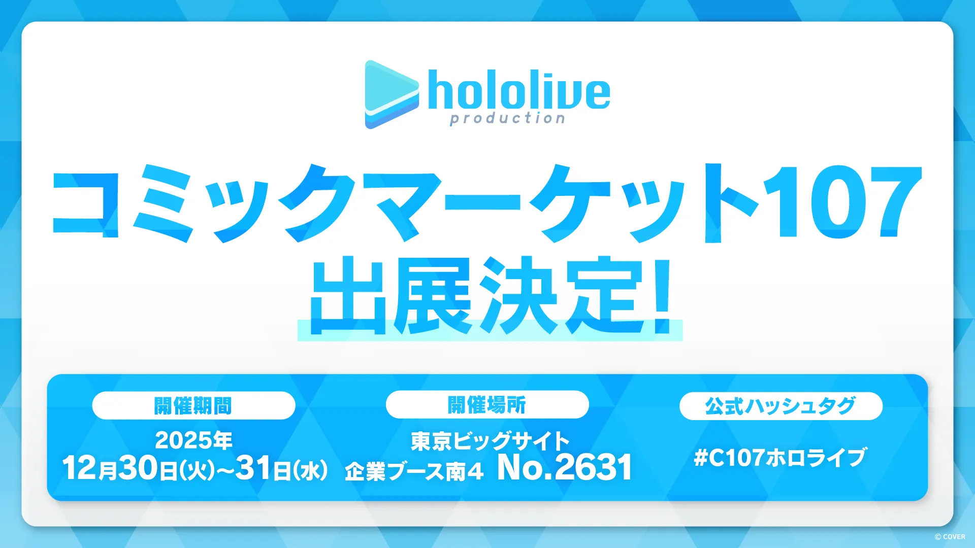 コミックマーケット107 | イベント情報 | hololive(ホロライブ)公式サイト